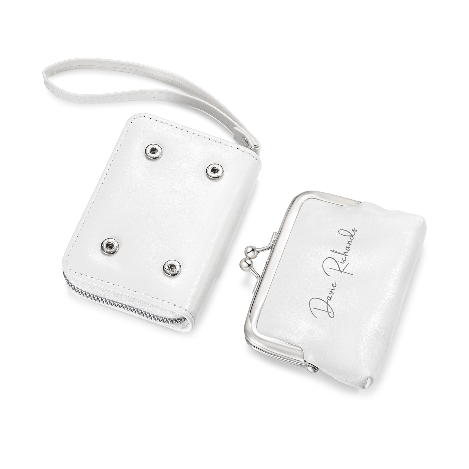 Personalised photo and name wallet with coin purse and wrist strap, retro clasp
