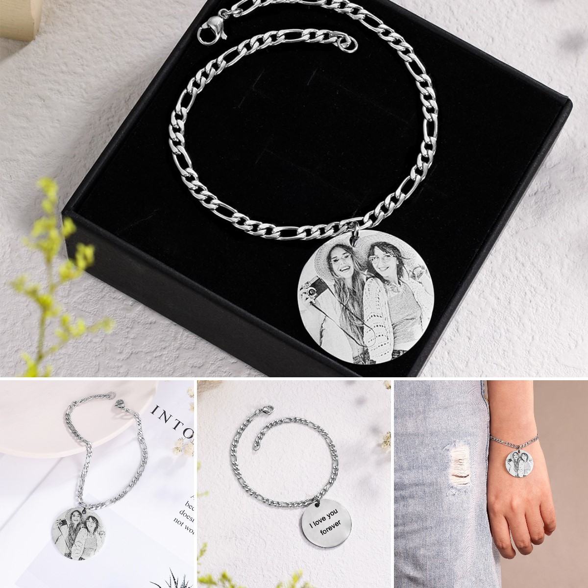 Personalised Photo Bracelet Customised Round Charm Bracelet Memorial Gifts For Her