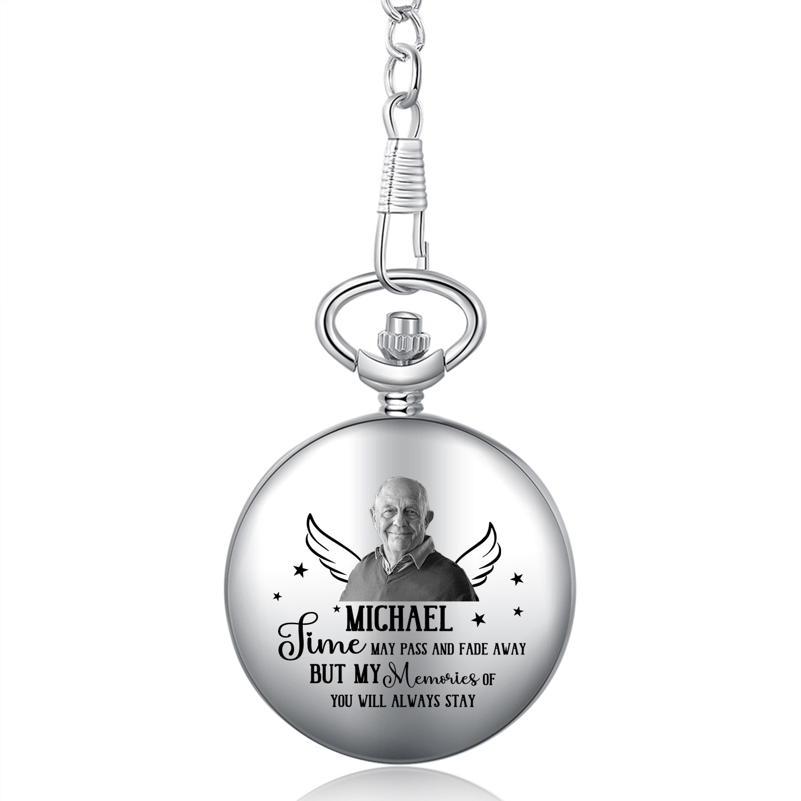 Keywords: personalised pocket watch, photo pocket watch, engraved memorial gift, sentimental gift for Dad, keepsake for Grandpa, practical men’s accessory, remembrance gift, classic timepiece