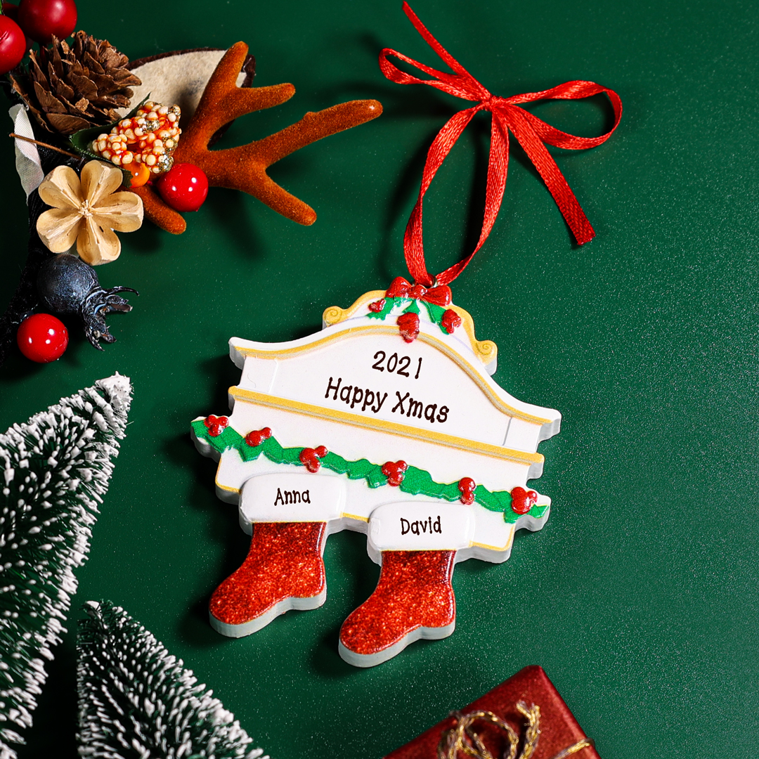 Personalised Red Stockings Ornament Custom 2 Names Gifts for Family