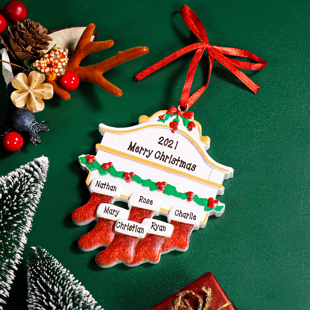 Personalised Red Stockings Ornament Custom 6 Names Gifts for Family