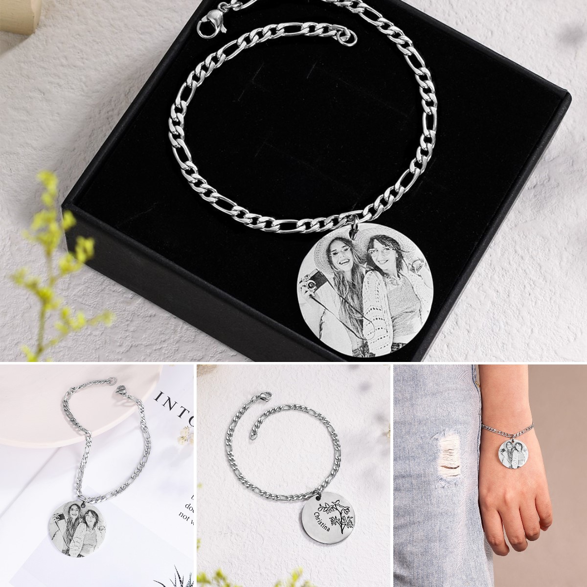Personalised Photo Bracelet Custom Birthflower Bracelet Memorial Gifts For Her