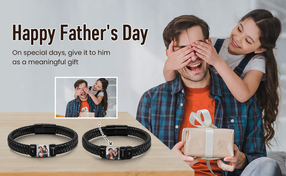 2 Names - Personalised Men's Leather Bracelet Custom Photo Braided Bracelet Gift for Him