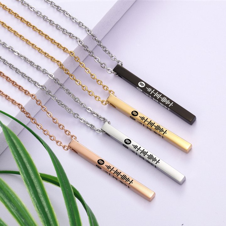 Personalised 3D Vertical Bar Necklace Customised Music Spotify Code Necklace for Her Him