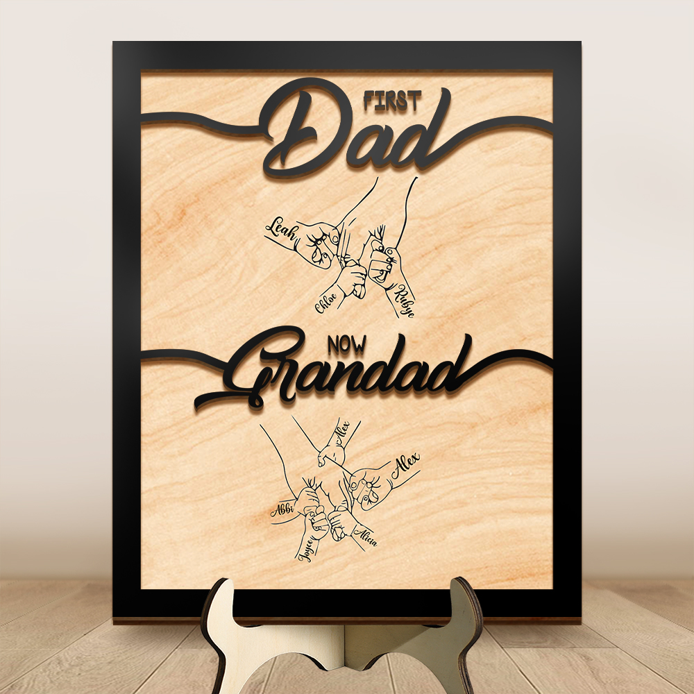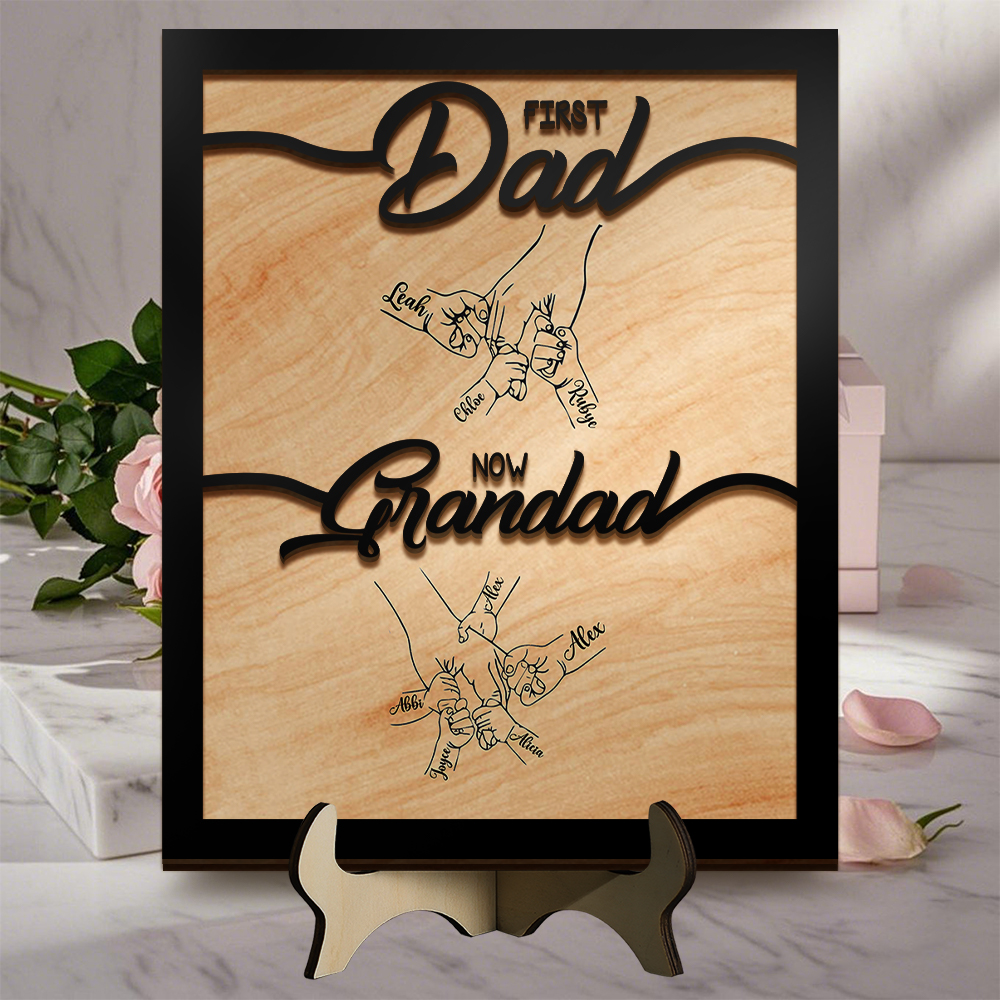Personalised “First Dad, Now Grandad” Plaque 2 to 14 Names Hand in hand Wooden Plaque | Jessemade