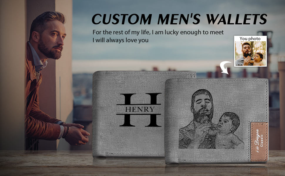 Personalised Leather Wallet Engraved Photo Short Purse Custom Folding Wallet Gifts For Him