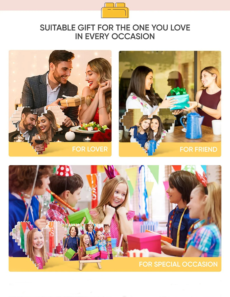 Personalised Spotify Code Heart Shape Building Blocks Puzzle Photo Brick Square Shape Puzzle DIY Gift - Double Layers