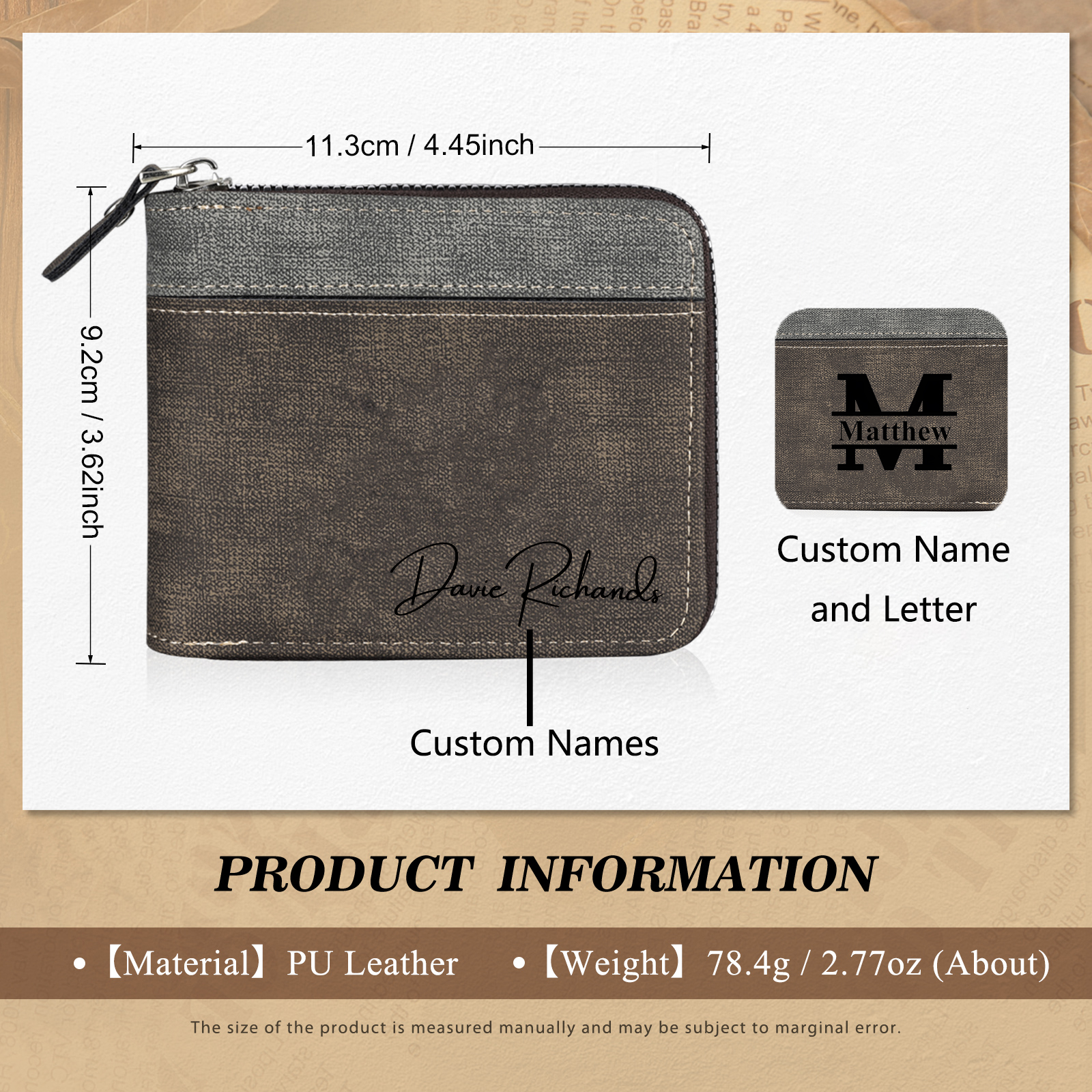 Personalised Text & Letter & Name Billfold Wallet Custom Men's Leather Wallet Zipper Gift for Him