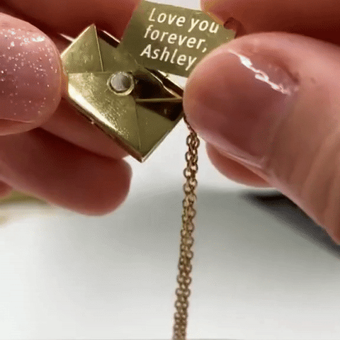 The envelope charm necklace is a perfect gift that can engrave a little message on the love letter card and hidden inside the envelope charm. Which opens up just like a real envelope to reveal a card insert for your very own engraved secret message. This envelope is hidden with a love letter – the ideal gift for the one you love!