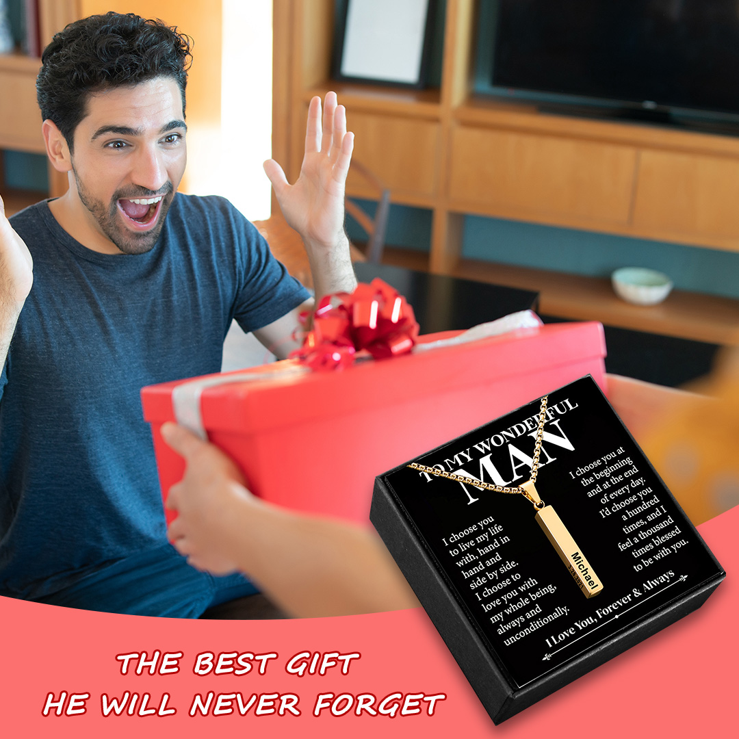 To My Dad Man Vertical Bar Necklace Personalised 4 Side 3D Bar Necklace Father's Day Gift