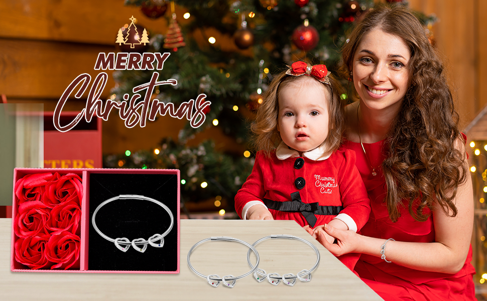 A beautifully crafted personalized bracelet featuring heart charms with custom birthstones and engraved names. Presented in a charming rose box, this piece is an elegant and meaningful gift for her, perfect for birthdays, anniversaries, or expressing love.