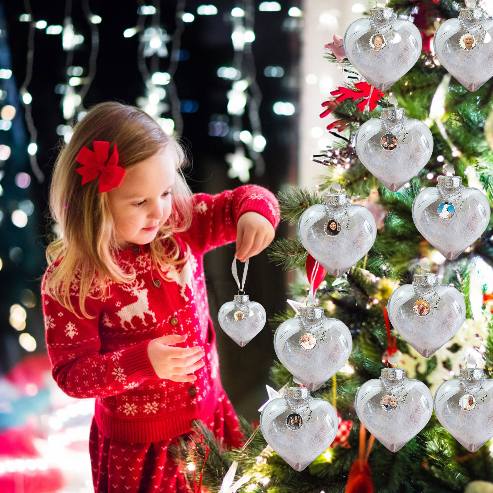 Personalised Christmas Heart Feather Ball Custom Photo Memorial Ornament