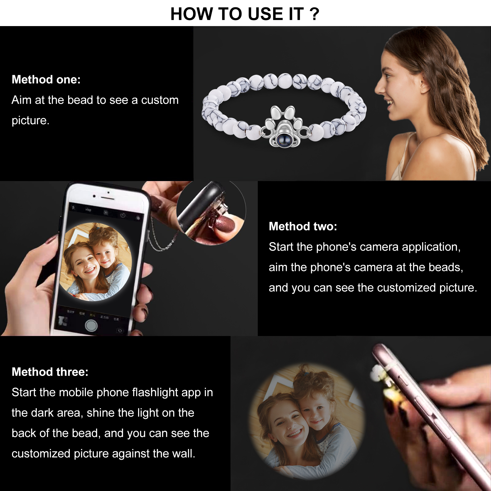 Personalised Dog Paw Projection Bracelet Customised Photo Bracelet Creative Gift for Her