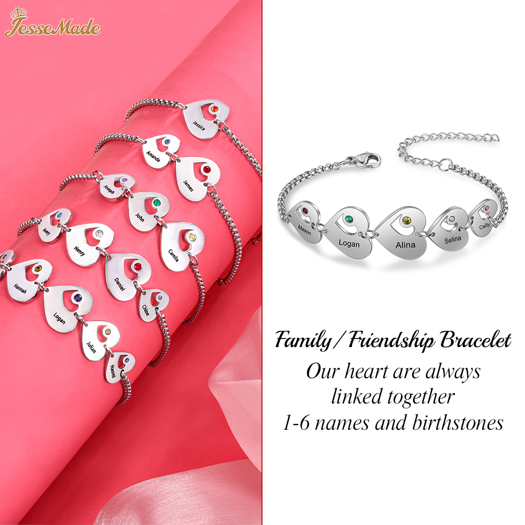 Personalised Heart Bracelet with Birthstones Custom 5 Names Family Bracelet Gifts for Her