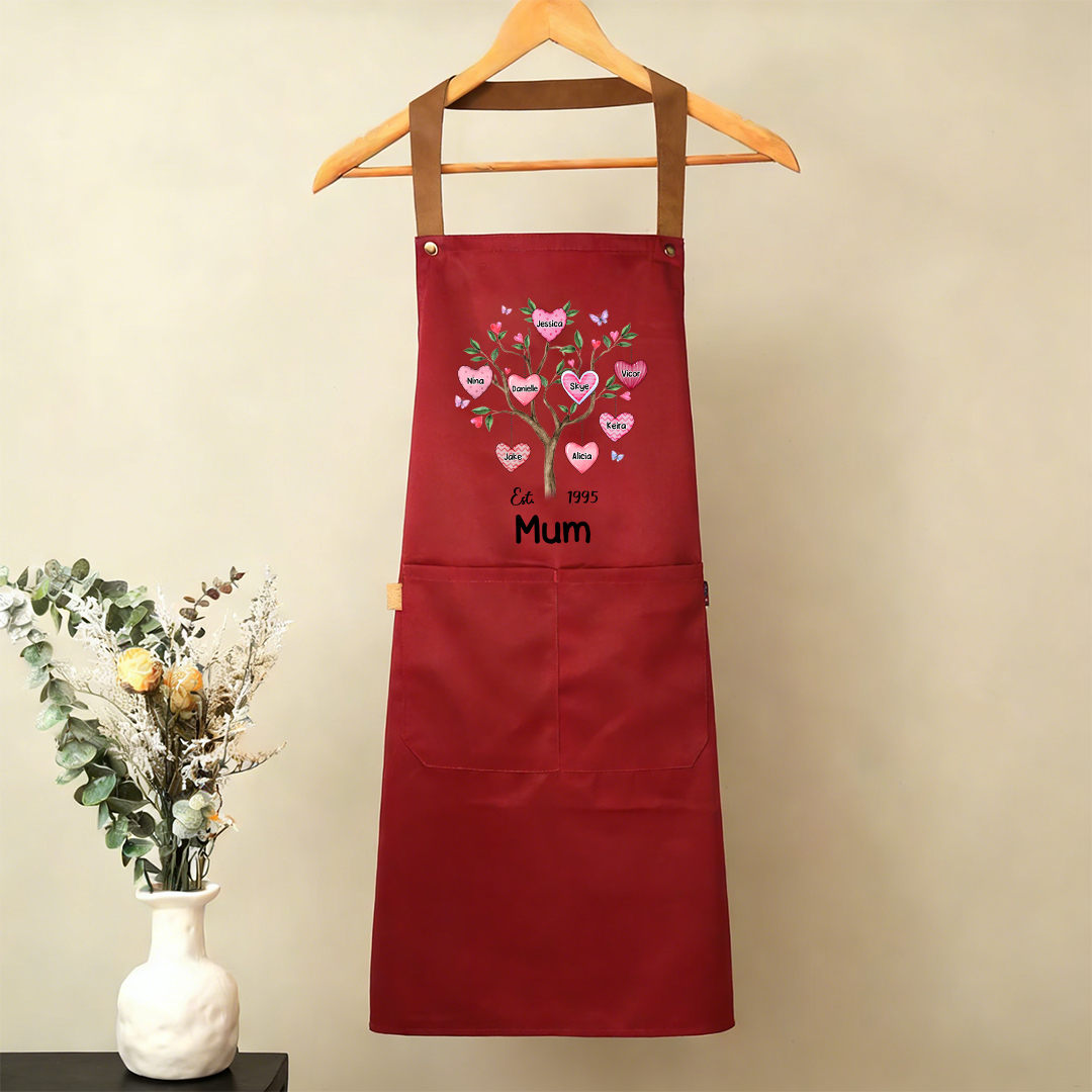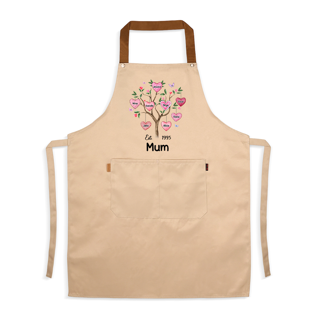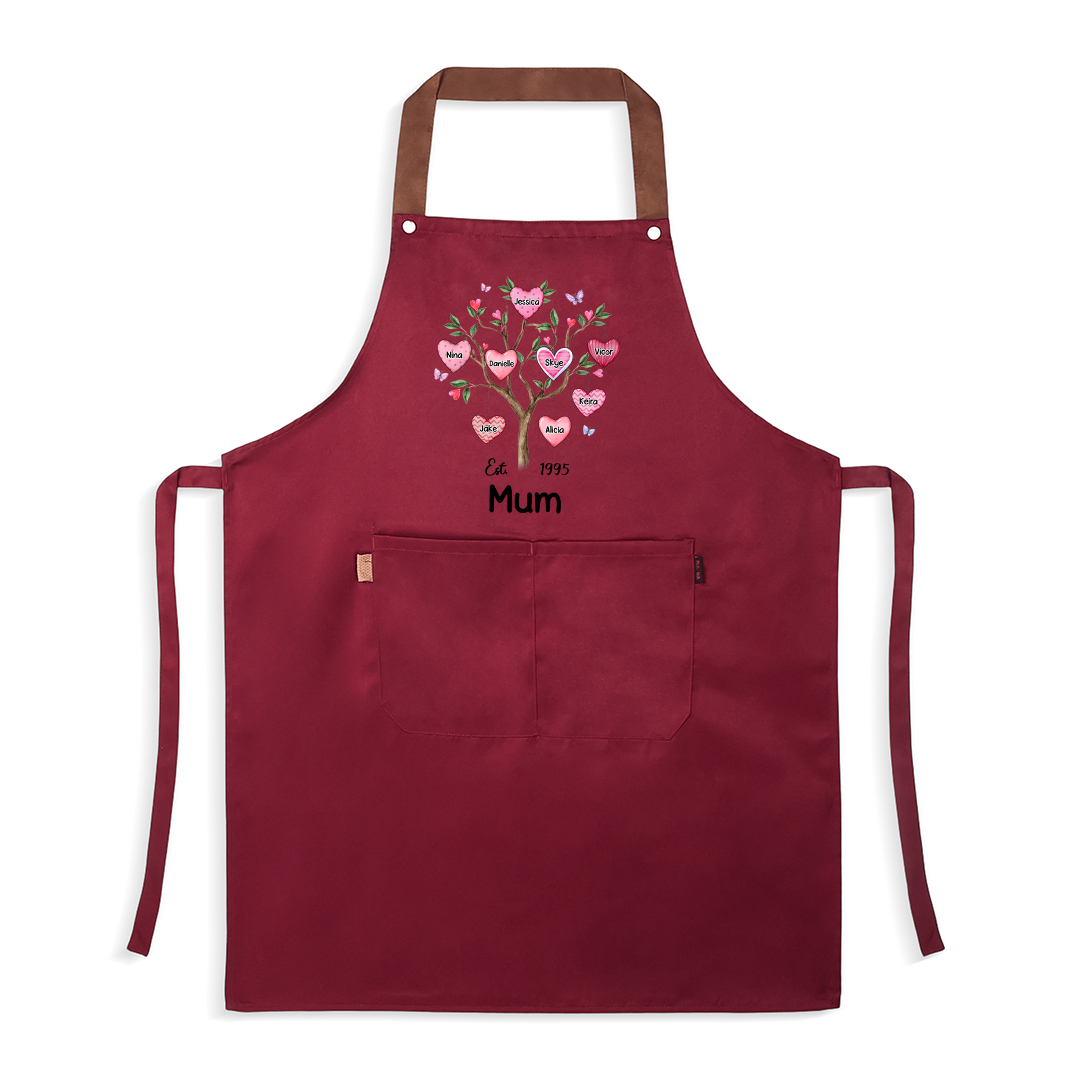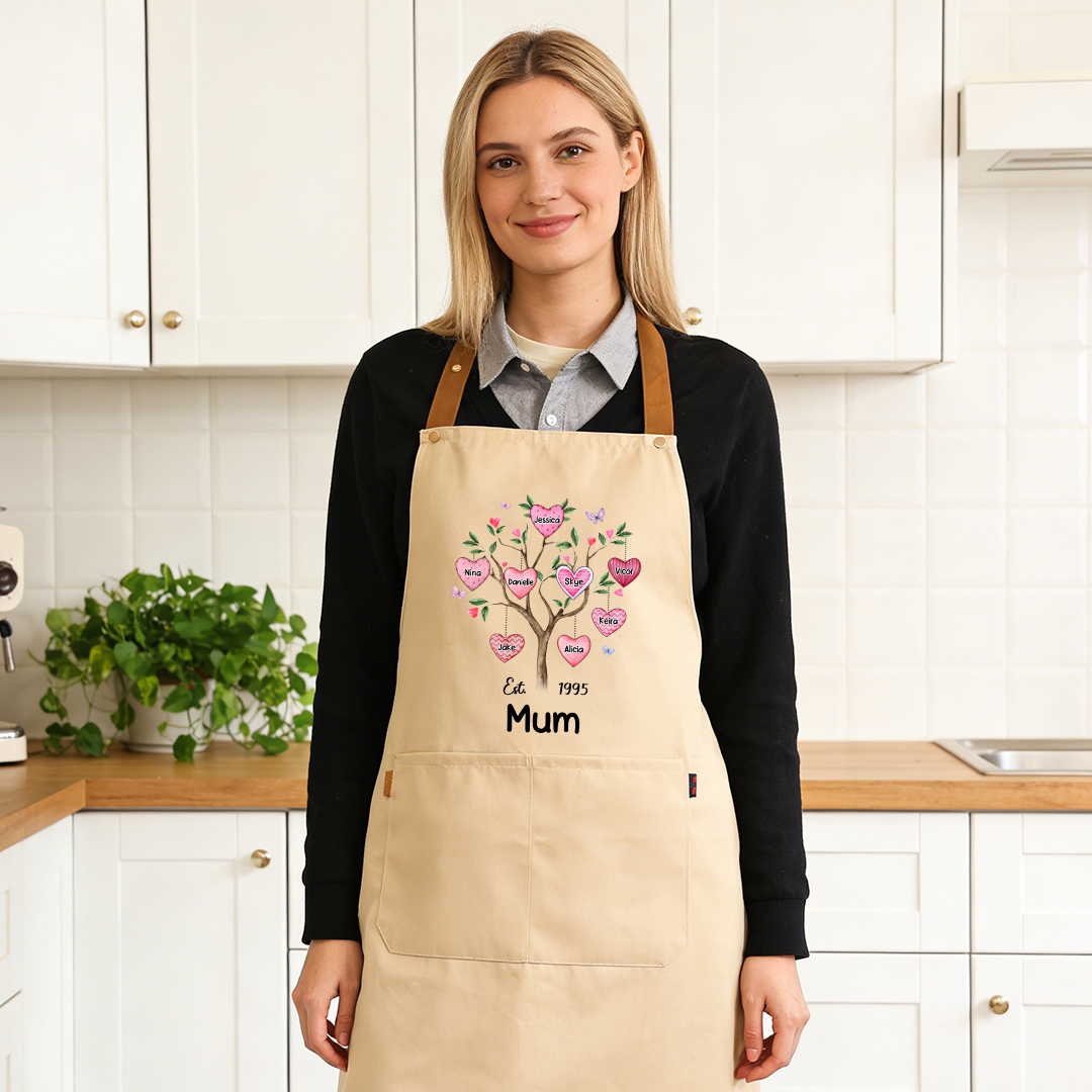 Keywords: personalised apron, custom name apron, mum apron, family tree apron, Mother’s Day gift for mum, cooking apron with pocket, BBQ apron gift, sentimental gift for mum, personalised kitchen gift