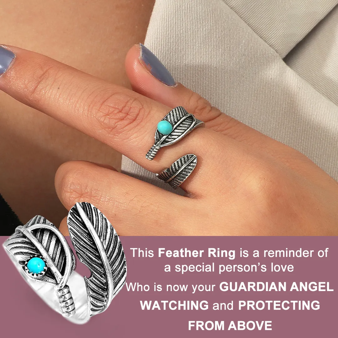 Memorial Feather Ring Open Ring Gift for Her - Your Guardian Angel Watching And Protecting From Above
